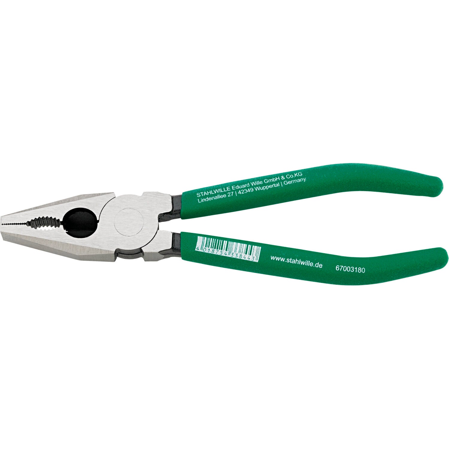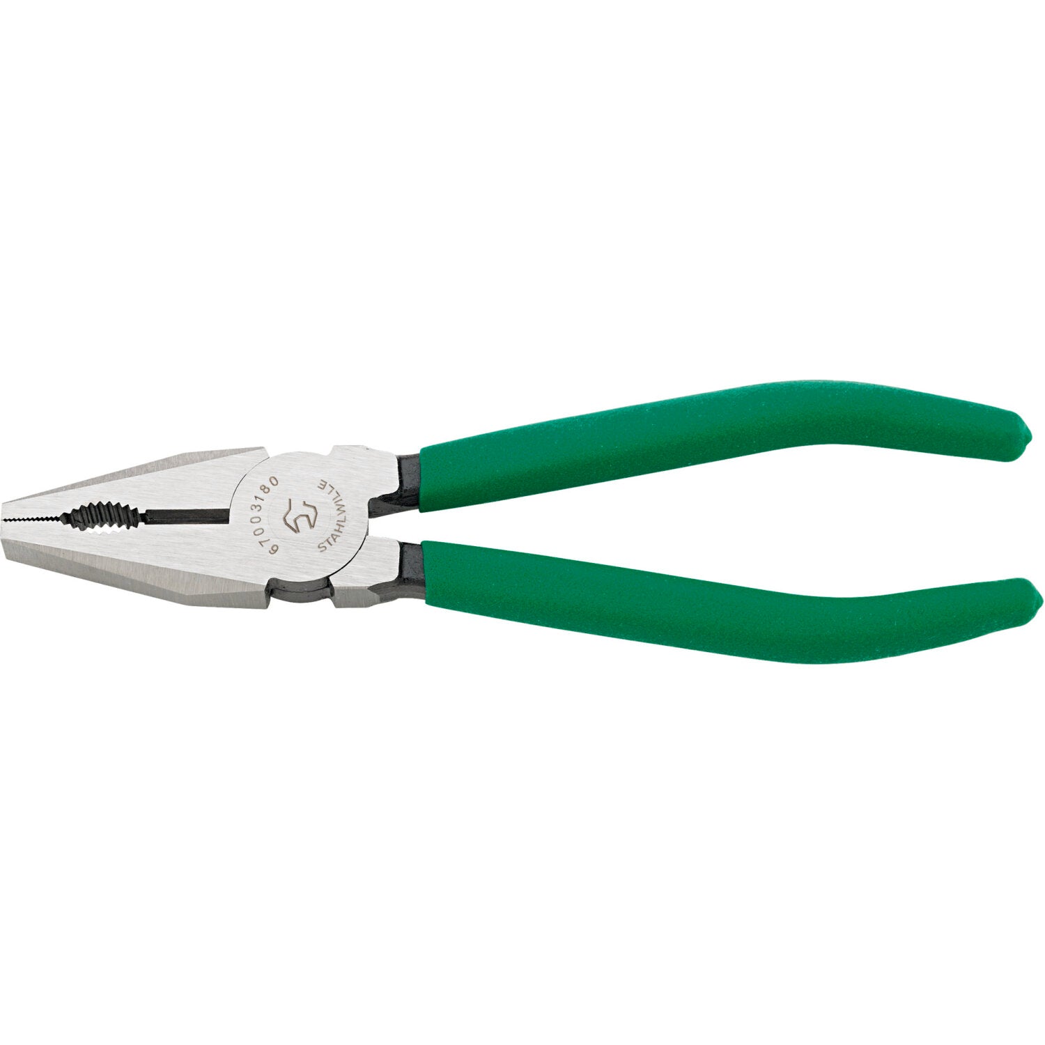 The universal pliers are equipped with fine and coarse serrations for optimum gripping, cutting, holding, and bending. The cutting edges are additionally inductively hardened to approximately 64 HRc, supporting optimum cutting performance during continuous use. The sharp, hardened cutting edges deliver equally precise results with both hard and soft wire. Non-slip handles with plastic coating and a textured surface provide an optimal grip during use. The inside of the handle is labelled with the EAN code, distributor, and article number.