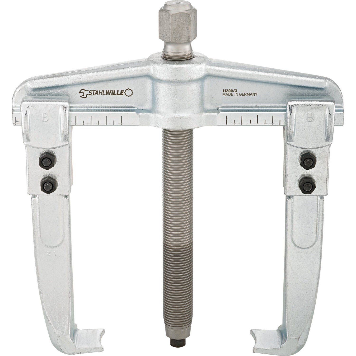 This puller enables quick and reliable removal of gears, ball bearings, and fan belts, as well as extraction of the outer rings of ball bearings and bushings from drilled holes. The adjustable puller arms allow universal use as both an external or internal puller. An adjustment scale on the beam ensures precise and uniform positioning of the puller hooks. Outstanding flexural strength is provided by legs with precisely manufactured profiles and smooth, milled guides. The nitrided surface of the spindle allows smooth movement without requiring additional lubrication.