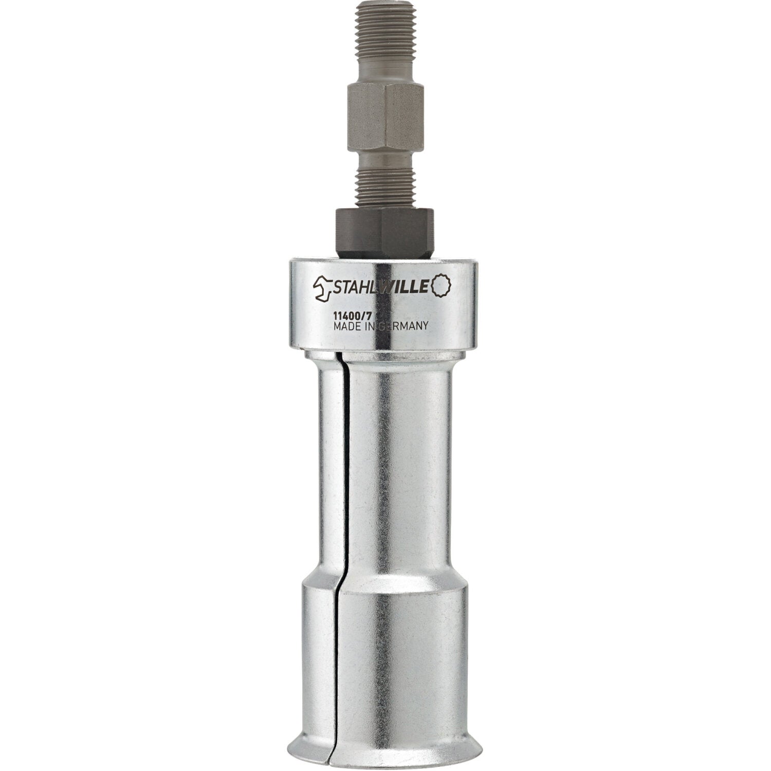 This durable tool is designed for extracting ball bearings, bushings, oil seals, and similar components. It is gentle on the workpiece due to even force distribution during operation. Removal is simple: insert the internal puller into the bearing and screw in the spindle. The sharp edges of the shells ensure a secure grip, allowing even bearings positioned close to the back panel to be pulled out reliably. It can be combined with slide hammers and counter stays for quick and efficient component removal.