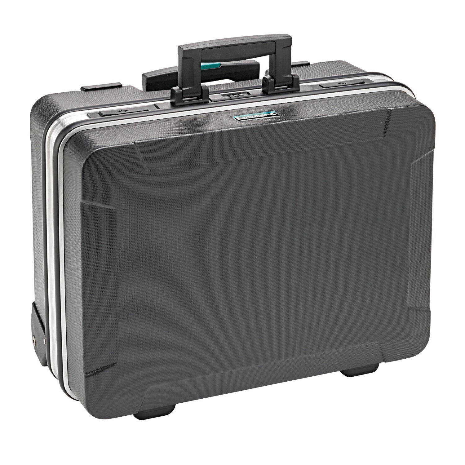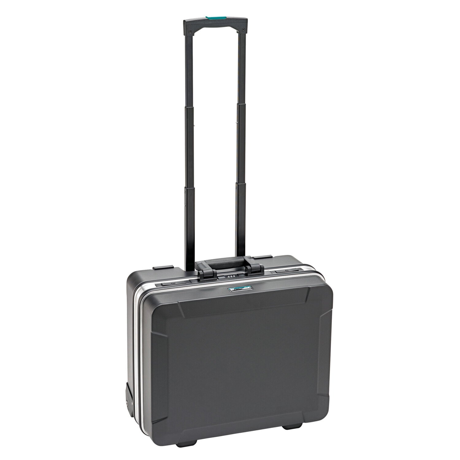The tool case (Product number: 81620010) is made of durable ABS plastic with a sturdy aluminium frame. It features a telescopic handle and 2 inline wheels for convenient mobility. The case measures 515 mm x 445 mm x mm, weighs 6 kg, and has a maximum load capacity of 30 kg Designed for easy transport, it can be moved effortlessly even when fully loaded, thanks to the adjustable telescopic handle and 2 inline castors. It provides an ideal storage solution with a removable cover plate featuring 15 compartments and a removable tool board with 22 compartments for organized tool arrangement. Additional storage options are available through 7 tabs in the lid and a base tray with individual partitioning options using adjustable dividers. For enhanced security, the robust aluminium frame with impact edge protection, along with 2 lockable tilt locks and a Proficode combination lock, offers protection against unauthorised access, including the separate document compartment in the lid.