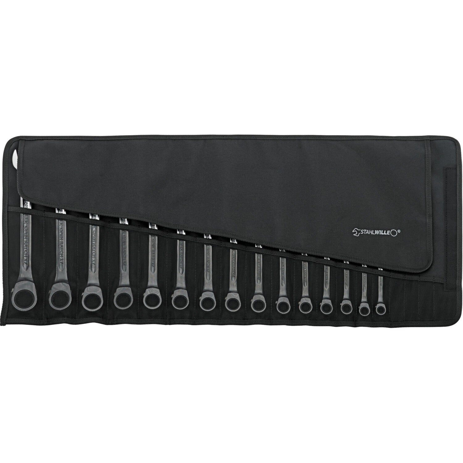 This high-quality combination ratcheting wrench set is supplied in metric sizes. The integrated ratchet features 72 teeth, allowing ratcheting at an angle of just 5° for efficient work in confined spaces. The open end is angled at 15° to improve accessibility when tightening or loosening bolts The distinctive STAHLWILLE rounded finish ensures the wrenches are comfortable to hold and easy to grip, enabling safe working even with oily hands. The set is stored in a space-saving tool roll that provides safe and well-organized storage.
