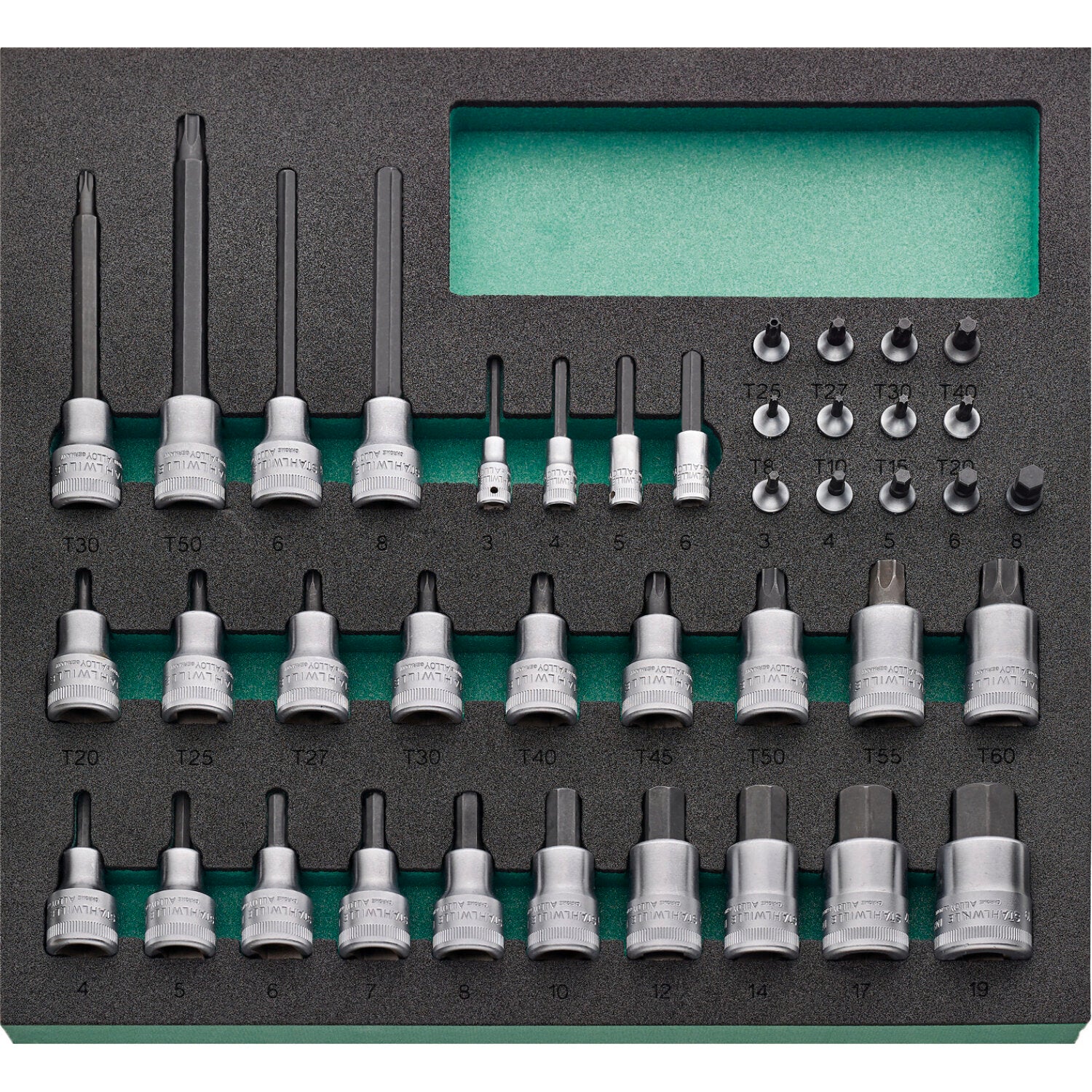 • The tool is securely stored in chemical-resistant, durable foam inlays with precise tool recesses and a signal coloured base layer.