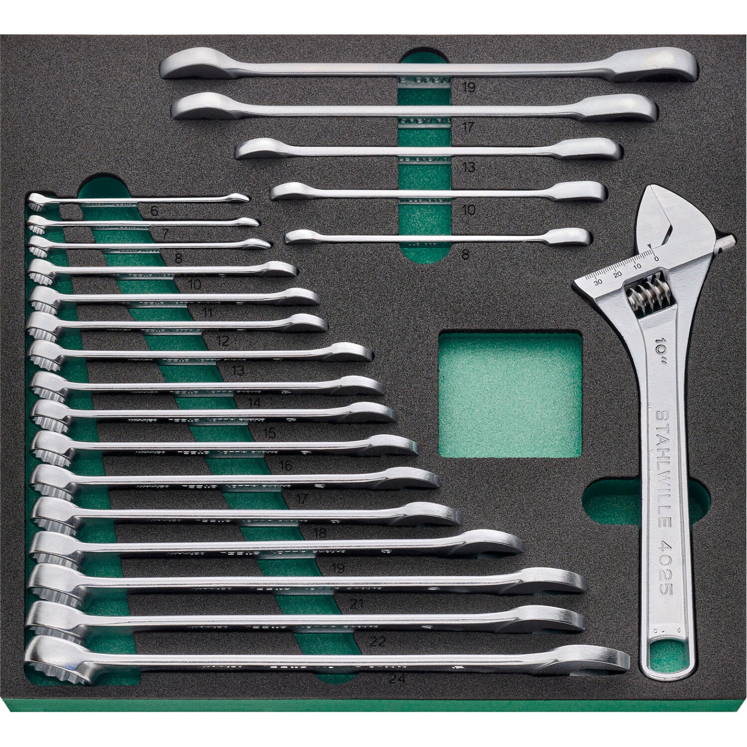 16 combination spanners no. 13:6; 7; 8; 10; 11; 12; 13; 14; 15; 16; 17; 18; 19; 21; 22; 24 mm