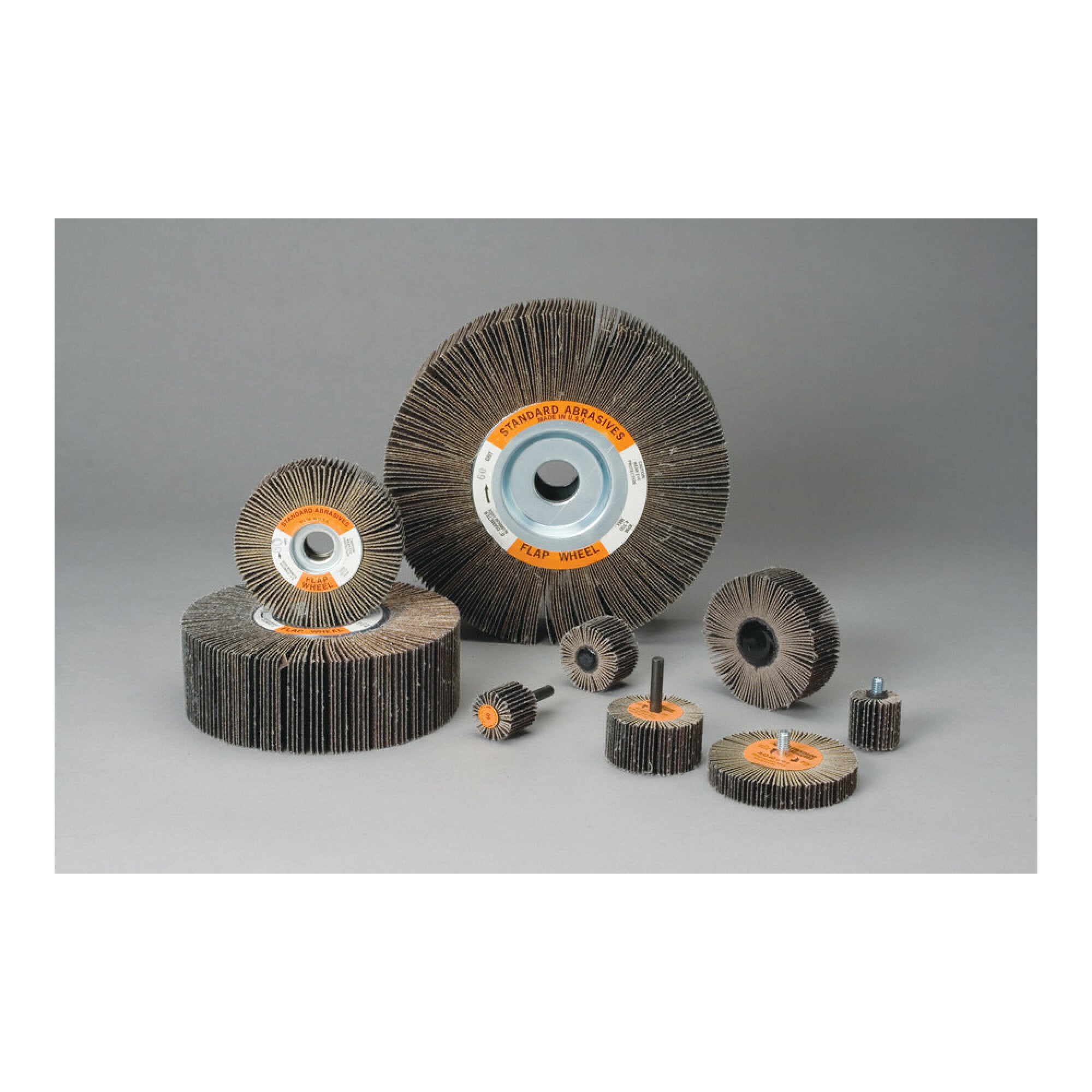 The Standard Abrasives Aluminum Oxide Flap Wheel works well on inside and outside diameters of metal workpieces for high stock removal and aggressive blending, finishing and cleaning, and leaves a straight line finish. Choose from a wide range of diameters with different attachment styles to achieve consistent coverage on many different contours and shapes.