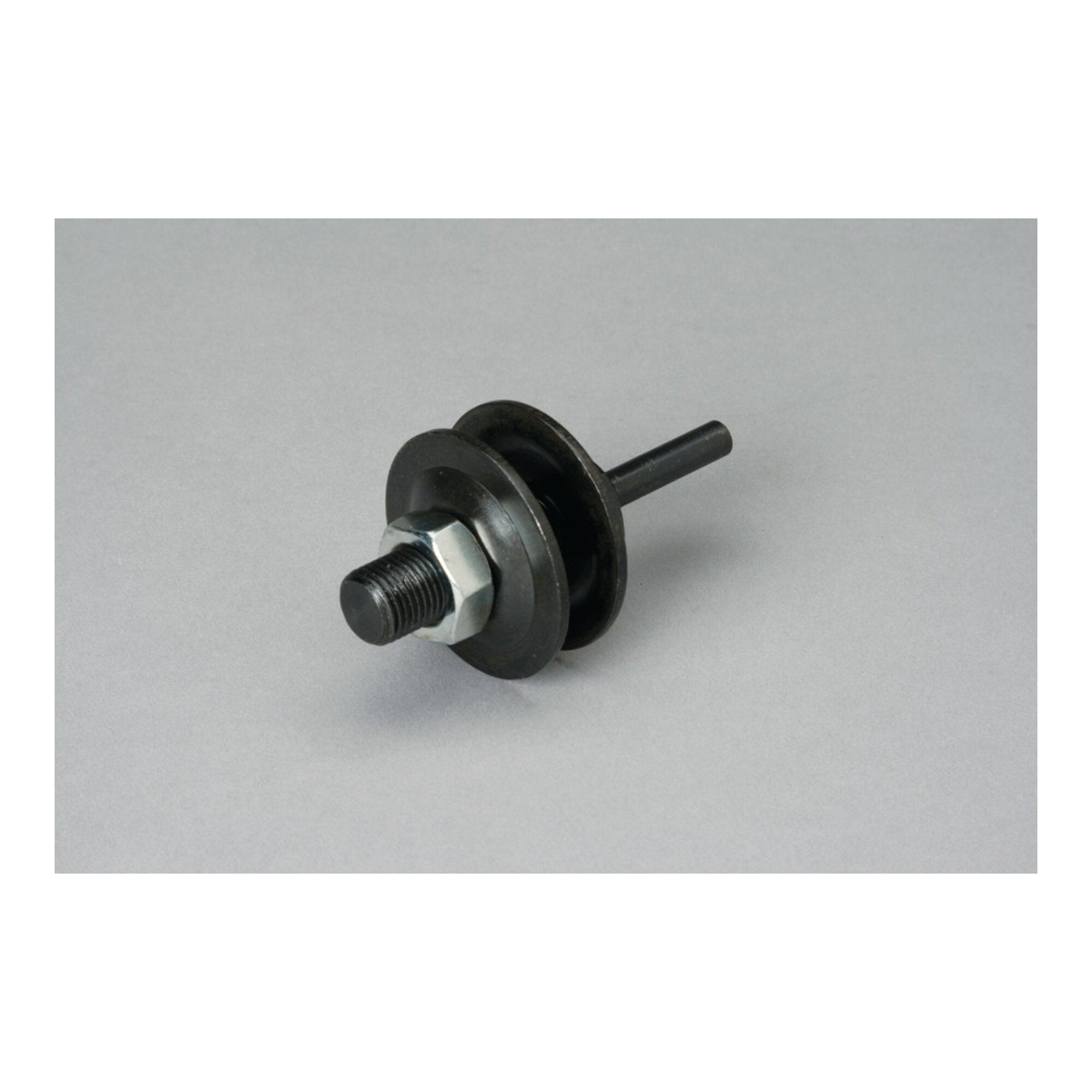 Some Standard Abrasives™ Unitized Wheels come with Quick Change Attachment Styles: TS, TR and TP. This mandrel was especially designed for center hole (CH) unitized wheels without Quick Change attachments. The mandrel facilitates easy fastening of the abrasive wheel to the tool. It drives CH wheels with 2-3˝ diameters and a 3/8˝ center hole. Made with steel, it is exceptionally durable and long-lasting, so it can stand up to repeated wear and be used during heavy-duty applications.