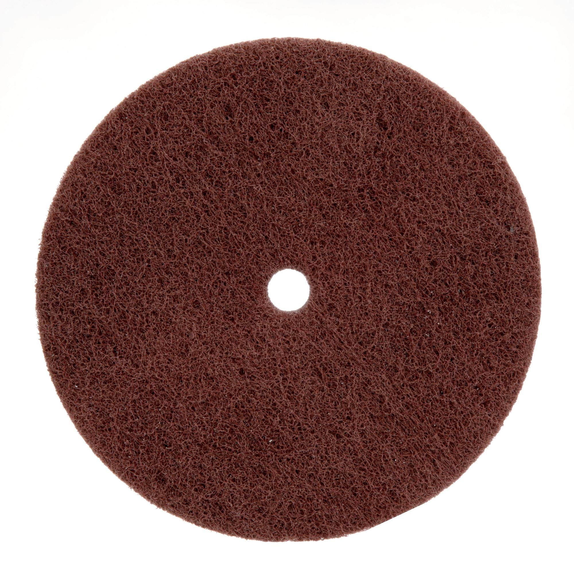 Our Standard Abrasives™ Buff and Blend GP Disc is a great multi-purpose product for general-duty industrial applications. One of five Buff and Blend materials, the maroon GP material is moderately aggressive. Use it to remove light oxidation, blend minor surface imperfections, clean surfaces prior to coatings, remove small burrs, and perform basic equipment cleanup. A flexible open web conforms to workpiece contours, radii and internal diameters. Its non-woven construction makes the disc spongy and responsive. If desired, discs may be ganged on a shaft to form a wheel and accommodate larger workpieces. When the job requires a tougher disc for higher-pressure applications, we recommend using a Standard Abrasives™ Buff and Blend HP or HS Disc. Quick change discs are also available.