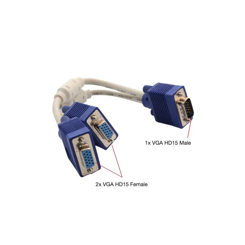 Syba CL-CAB32001 VGA HD15 Male to Dual VGA HD15 Female Adapter