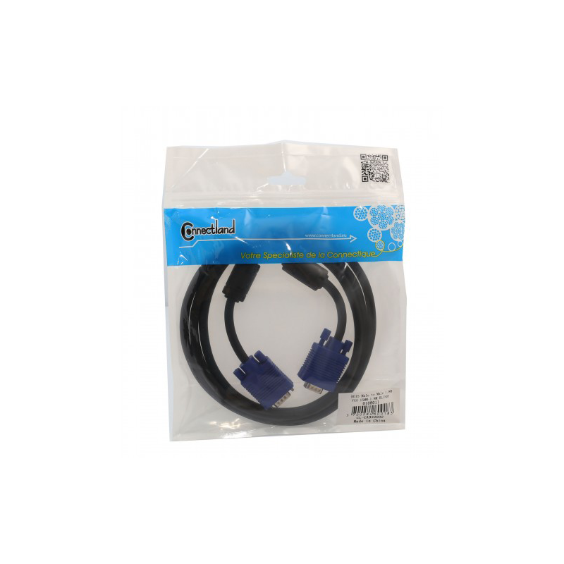 Connect land CL-CAB32004 computer monitor VGA/SVGA HD14 Male to Male cable. 15 ft. construction for superior signal quality. This premium SVGA monitor cables are ideal for connecting your high-resolution monitor to your PC. Works with Laptop, desktop PC display on presentation Projector. 15 feet VGA/SVGA HD14 Cable connect projector to PC or Laptop. 15 feet; 15'; VGA; SVGA; 14-pin; Cable; Projector; Monitor; Presentation; Laptop