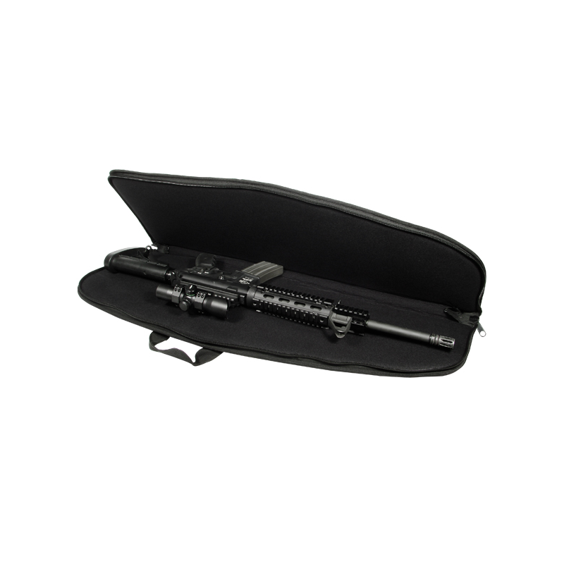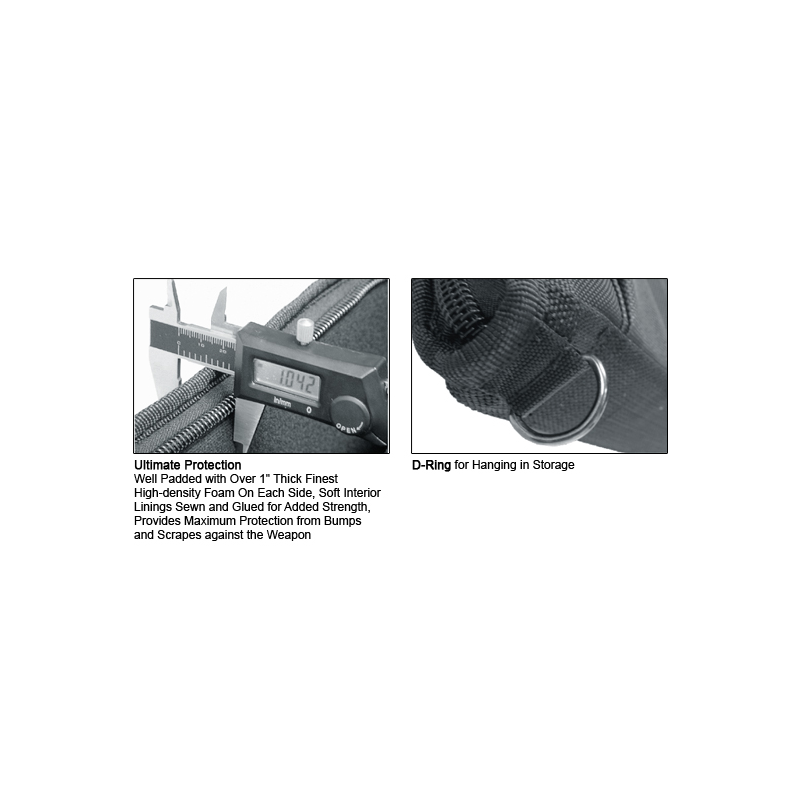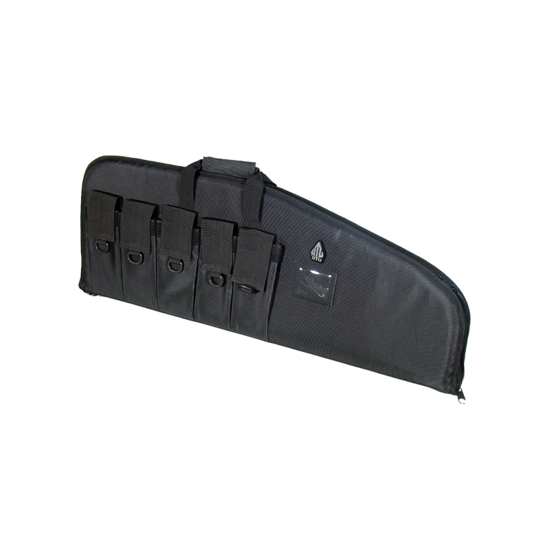 • Water Resistant and Durable 900D Polyester Construction • 5 External Magazine Pouches with Protective Hook-and-loop Covers Equipped with D-rings • Optimally Designed for the Collapsible Stock Equipped AR15 • Padded Interior Provides Maximum Protection from Dents and Scratches • 1.5" Wide Adjustable Shoulder Strap for Hands Free Transportation • Durable 1.5" Wide Two-piece Wraparound Carry Handle for Immediate Grab and Go • Reinforced 6-stitch Threading for Added Protection Against Wear and Tear • Rigid Back Spine for Improved Durability and Shape Integrity • D-ring for Convenient Wall Hanger Storage • Dual #10 Heavy Duty Lockable Zippers • Main Compartment Size: Length 34" x Height 12"