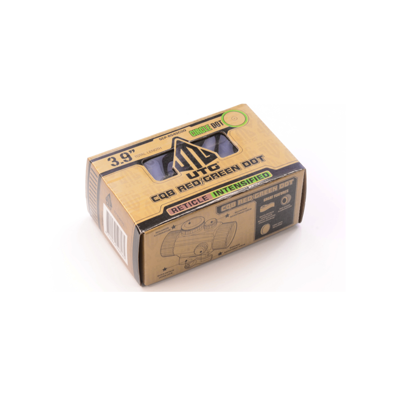 The UTG new generation Instant Target Aiming (ITA) compact tactical sight features a red/green 4MOA target dot and 65MOA circle reticle with a 38-millimeter diameter objective lens. The sight comes complete with integral quick detachable Picatinny mounts with a fully adjustable cam lever lock system, and flip-open lens cover. The sight is designed for instant aiming and locking on target, with five brightness settings that function in diverse settings. The sight offers optimal height design to co-witness with iron sights on AR models.