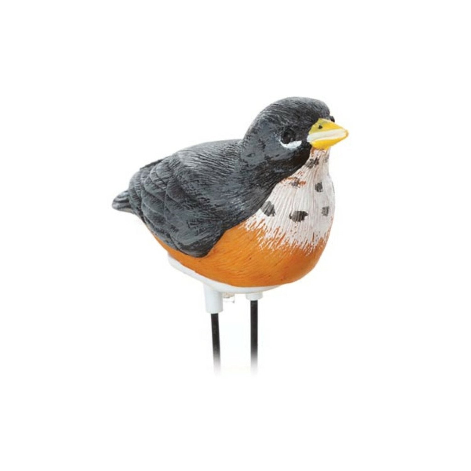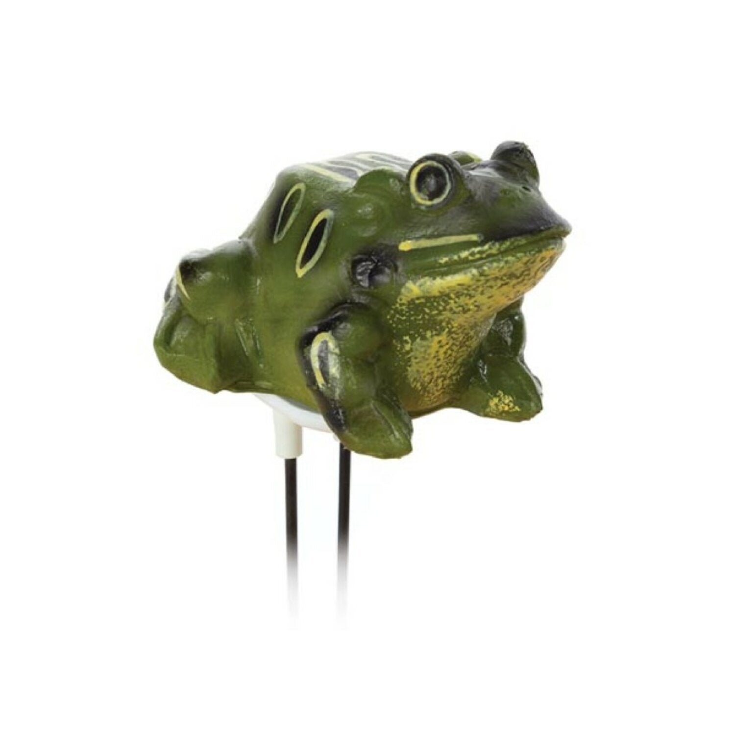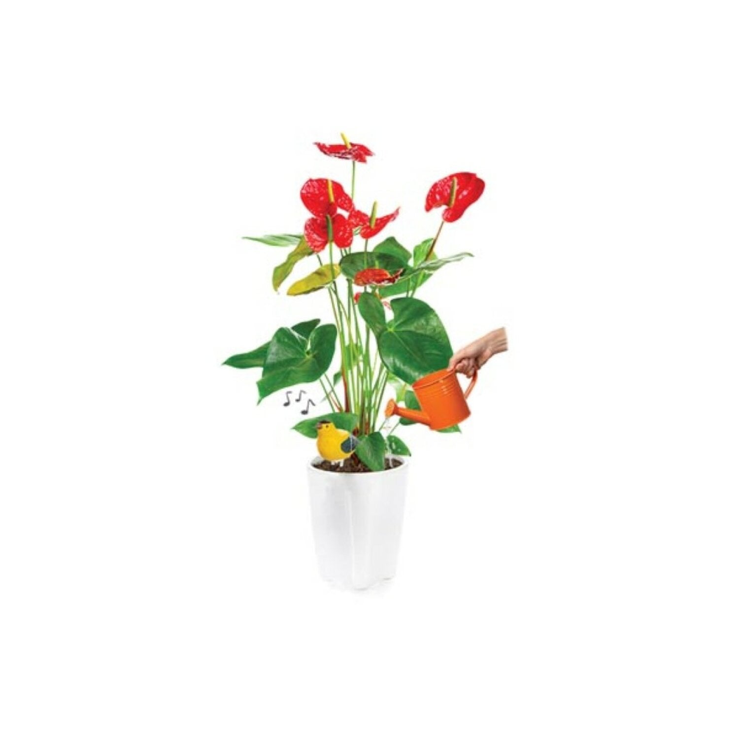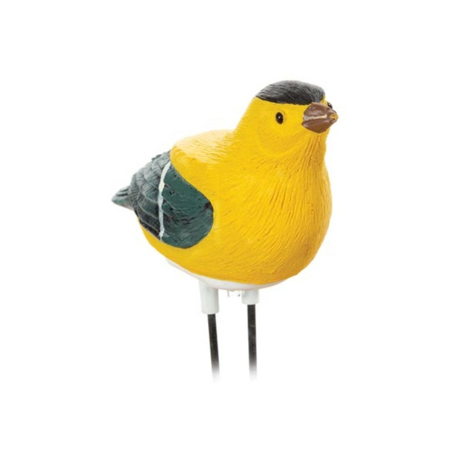 Discover our display featuring four unique dryness indicators that accurately measure soil moisture and notify you when your plants are thirsty: a finch, a blue jay, a robin, and a frog. With the chirping bird or the croaking frog, you'll never forget to water your plants again. The humidity sensor measures soil moisture levels, indicating when the soil is too dry. Water your plant and the sound stops. Each piece is hand-painted and crafted from premium polyresin, making it not only functional but also a beautiful addition to your interior. The built-in light sensor ensures a peaceful night's sleep. Specs.