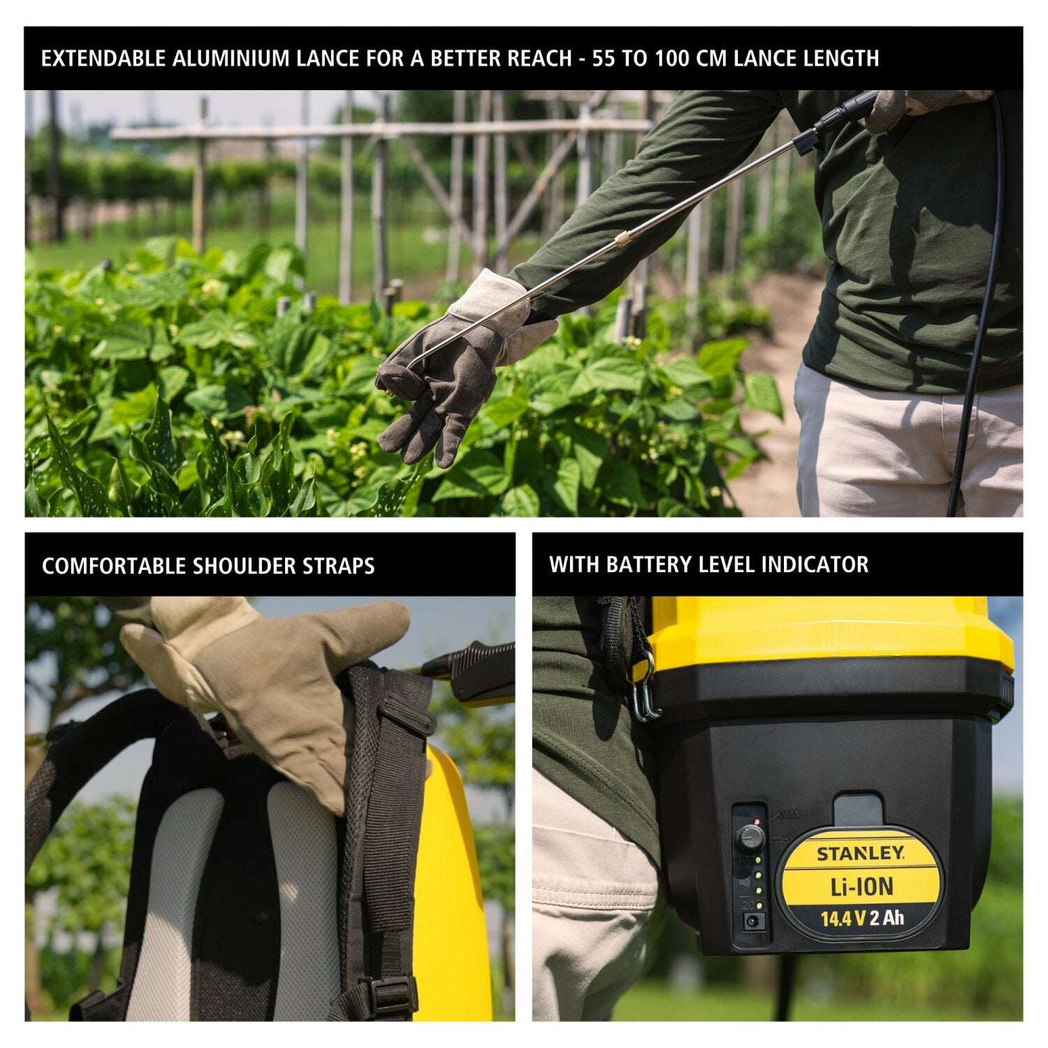 - High-performance battery: The rechargeable lithium-ion battery (14.4 V / 2.0 Ah) is designed to deliver powerful and reliable performance, allowing it to work continuously for up to 2 hours. This makes the pressure sprayer especially suitable for extended tasks without the need for frequent recharging.