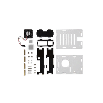 The housing consists out of two transparent bottom and top plates and 4 piano black sides. The sides give an easy access to the GPIO ports, SD card and USB, HDMI, LAN and power connectors.