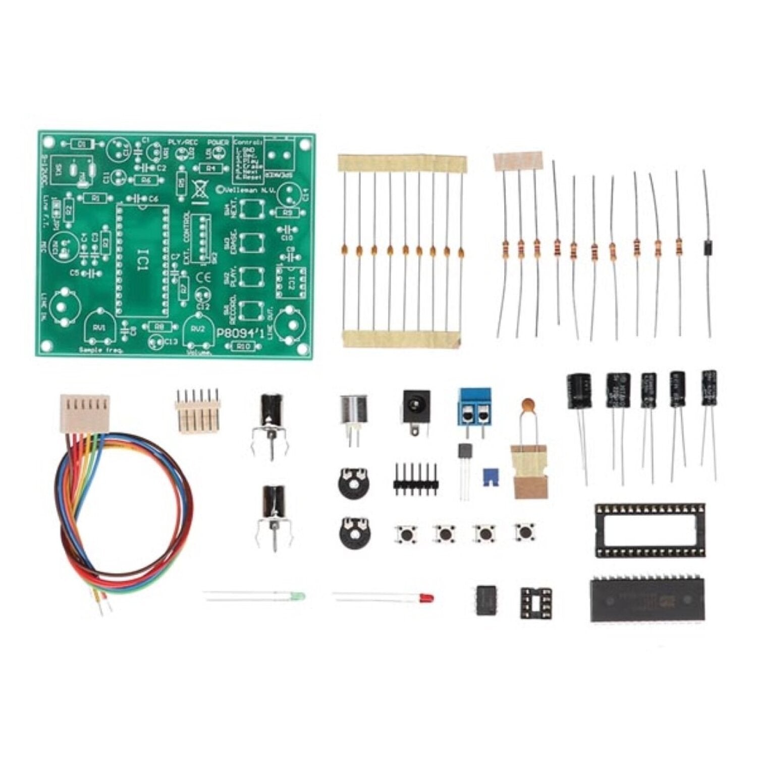 The kit is ideal for recording and playing back spoken messages of up to 8 minutes The recording speed can be adjusted gradually, allowing you to achieve the perfect balance between recording length and sound quality. In addition, it offers fun effects. In the event of a power outage, messages are stored. It is equipped with a microphone, line-level input and output, and a connection for a small speaker. Ideal for playing messages in museums, shops, interactive installations, models, or toys, or use it as a doorbell, gadget, or other device.