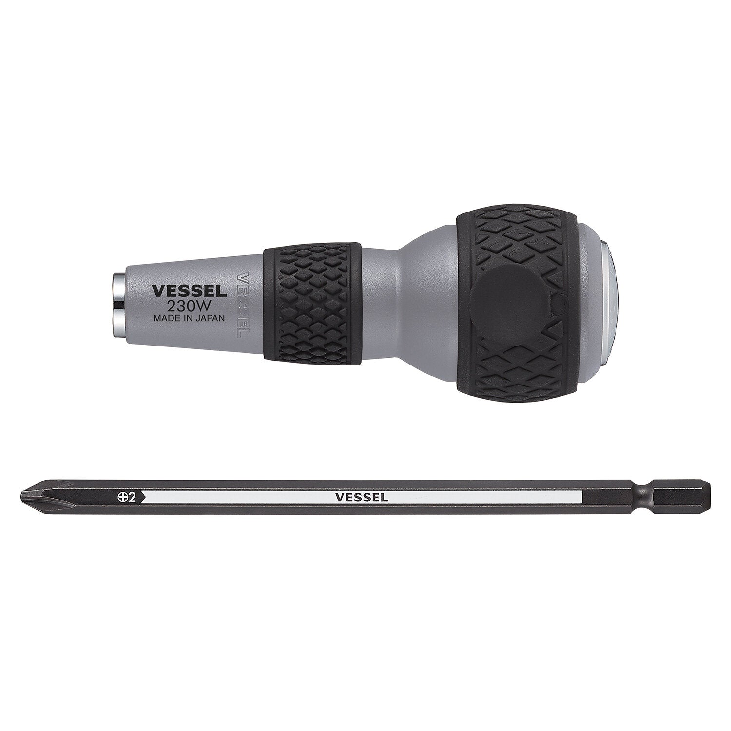 Vessel 230W2 Ball Grip 1/4" Hex. Bit Interchangeable Tang-Thru Screwdriver Set No.230W-2