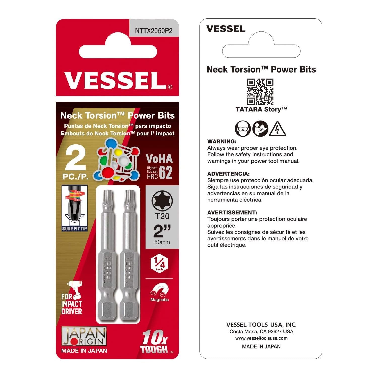 Vessel Tools NTTX2050P2 Neck Torsion Power Bits, T20 x 50 mm, 2 Pc.