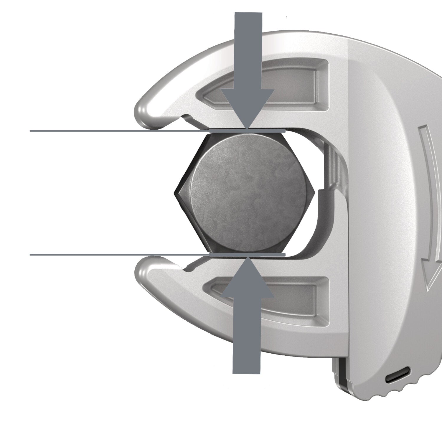 Jaws are designed to be gentle on the screw by applying pressure evenly across the surface
