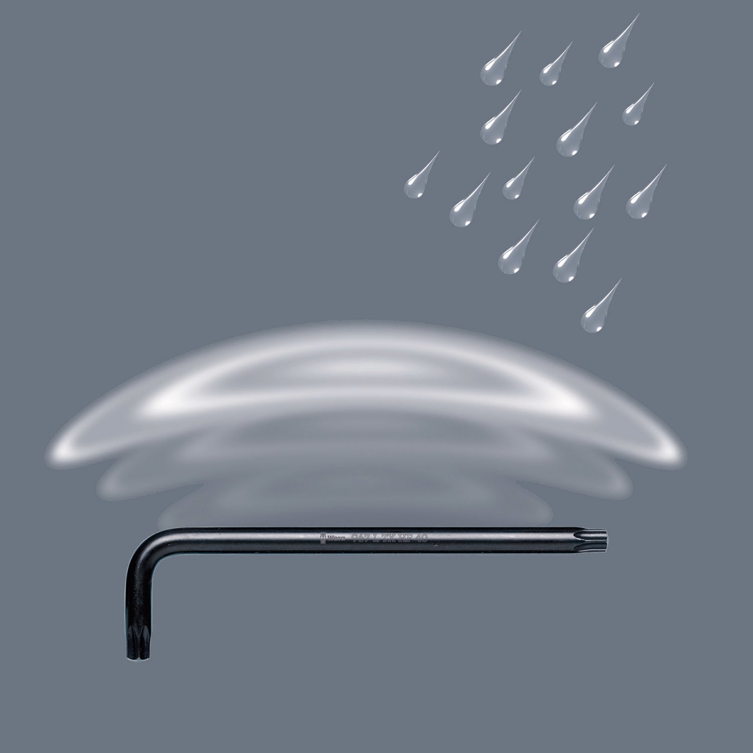 High quality L-keys for recessed TORX® screws. Holding function: the wedging forces resulting from the contact pressure between the drive tip and the screw profile securely hold the screw on the tool. Comes with extra-long arm. The BlackLaser surface treatment provides outstanding surface protection, even against corrosion, and a long service life. The tools are quickly to hand thanks to the laser-engraved and thereby wear-resistant size markings on the L-keys.