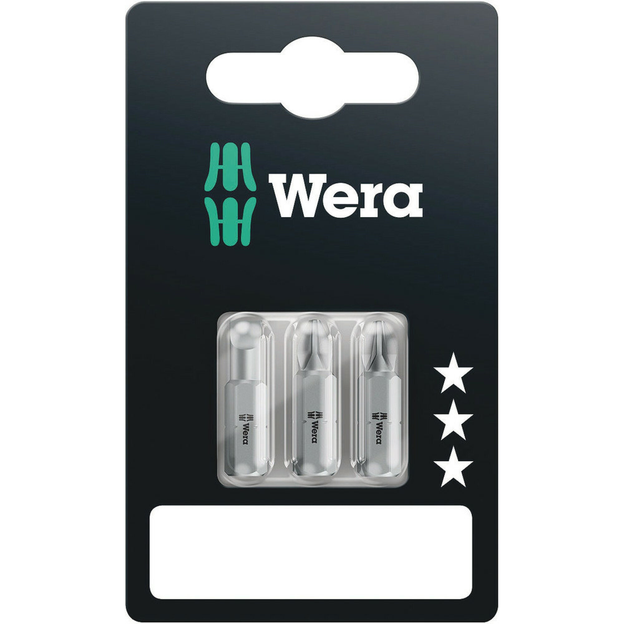 Tough viscous Wera bits in a practical 3-piece set, for universal use. 1/4" hexagon, suitable for holders as per DIN ISO 1173-D 6.3.