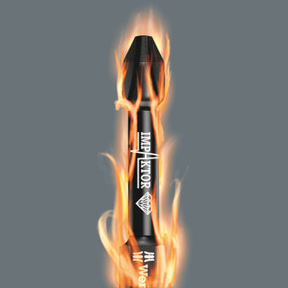 High quality Impaktor bits for hexagon socket screws. The Impaktor technology offers an above-average service life even under extreme circumstances. Enhanced friction resistance, thanks to the rough diamond-particle coating on the bit tip, prevents any slipping out of the screw head. Hex-Plus ensures a greater contact surface in the head of the screw. The notching effect is therefore reduced to a minimum and damage to the screw head more or less eliminated. ¼" hexagon, suitable for holders as per DIN ISO 1173-D 6.3.