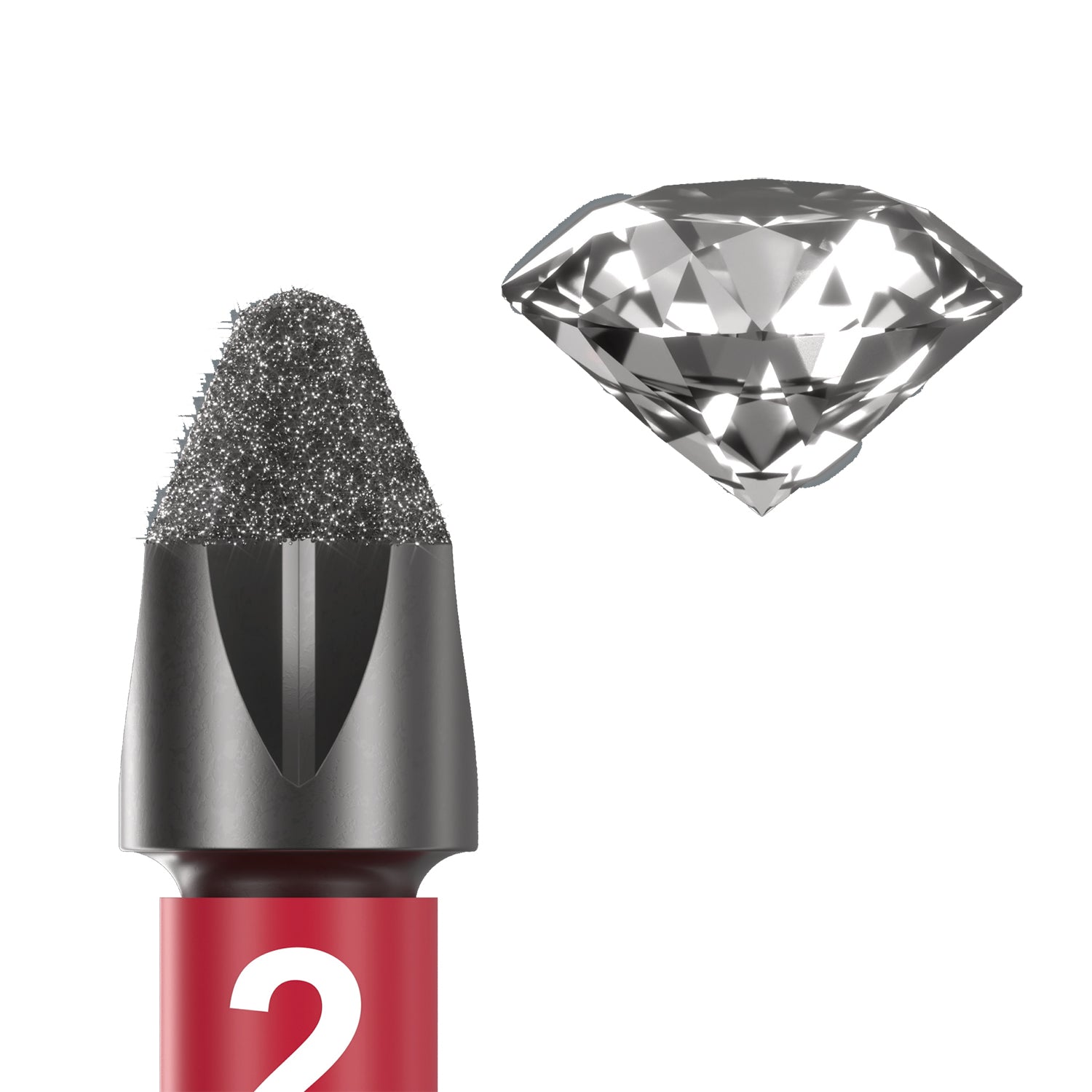 - Diamond coating for a secure fit in the screw, literally bites into the screwhead to prevent cam-out
