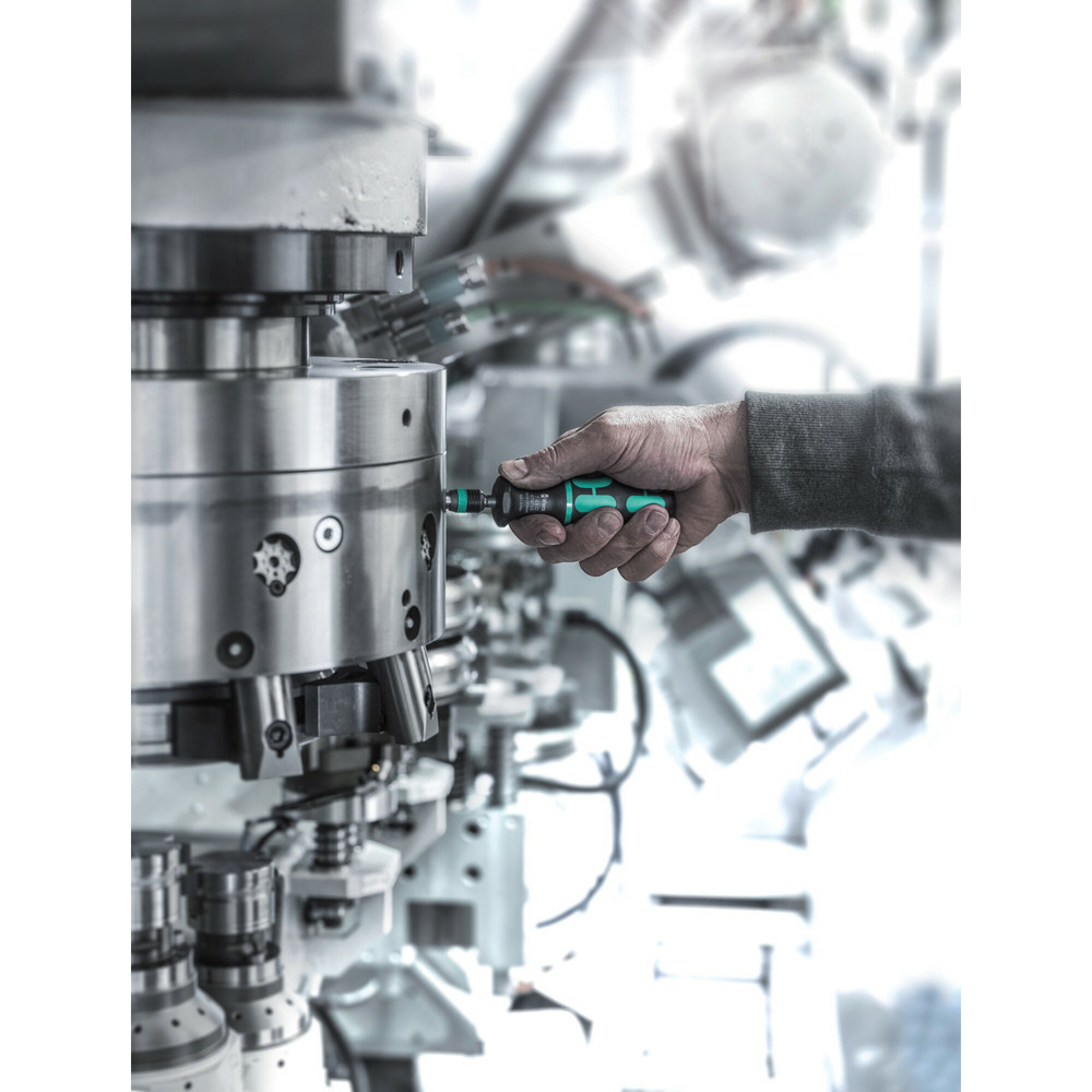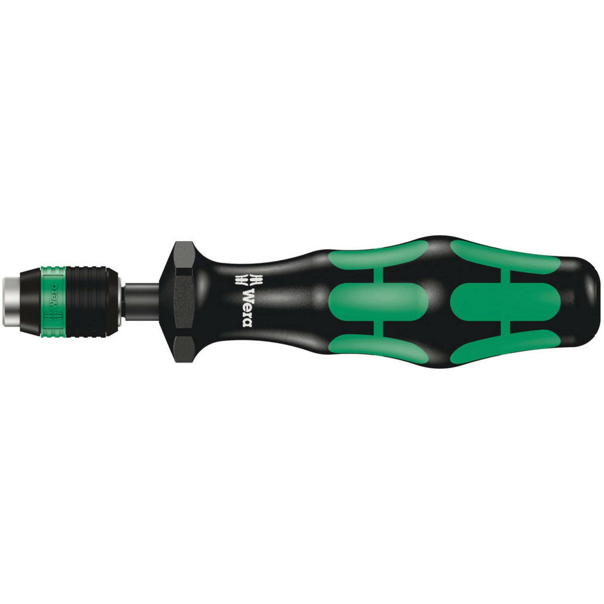 Wera torque screwdriver. With a factory pre-set torque value set to the smallest scale value. For all applications, where the same constant torque and repeat accuracy are required. The torque can be changed with an extra tool within the measuring range (re-calibration kit can be ordered with the code number 05137003001). Afterwards you can check the set value using an off-the-shelf torque tester. Unlimited loosening torque for slackening stuck screws. Rapidaptor quick-release technology for rapid bit changes. Suitable for bits with a 1/4" external hexagon drive as per DIN ISO 1173-C 6.3 and E 6.3 (ISO 1173). Multi-component Kraftform handle with hard and soft zones for high working speeds, whilst being easy on the hand.Please note: 1 Ncm = 0.01 Nm.
