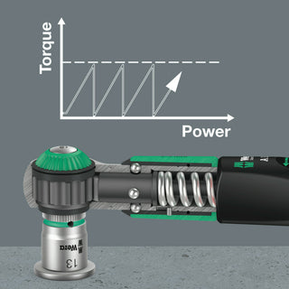 • Torque Lock function: The torque function can be deactivated and the tool can then be used as a standard ratchet with high loosening moments and for applications with defined angles of rotation