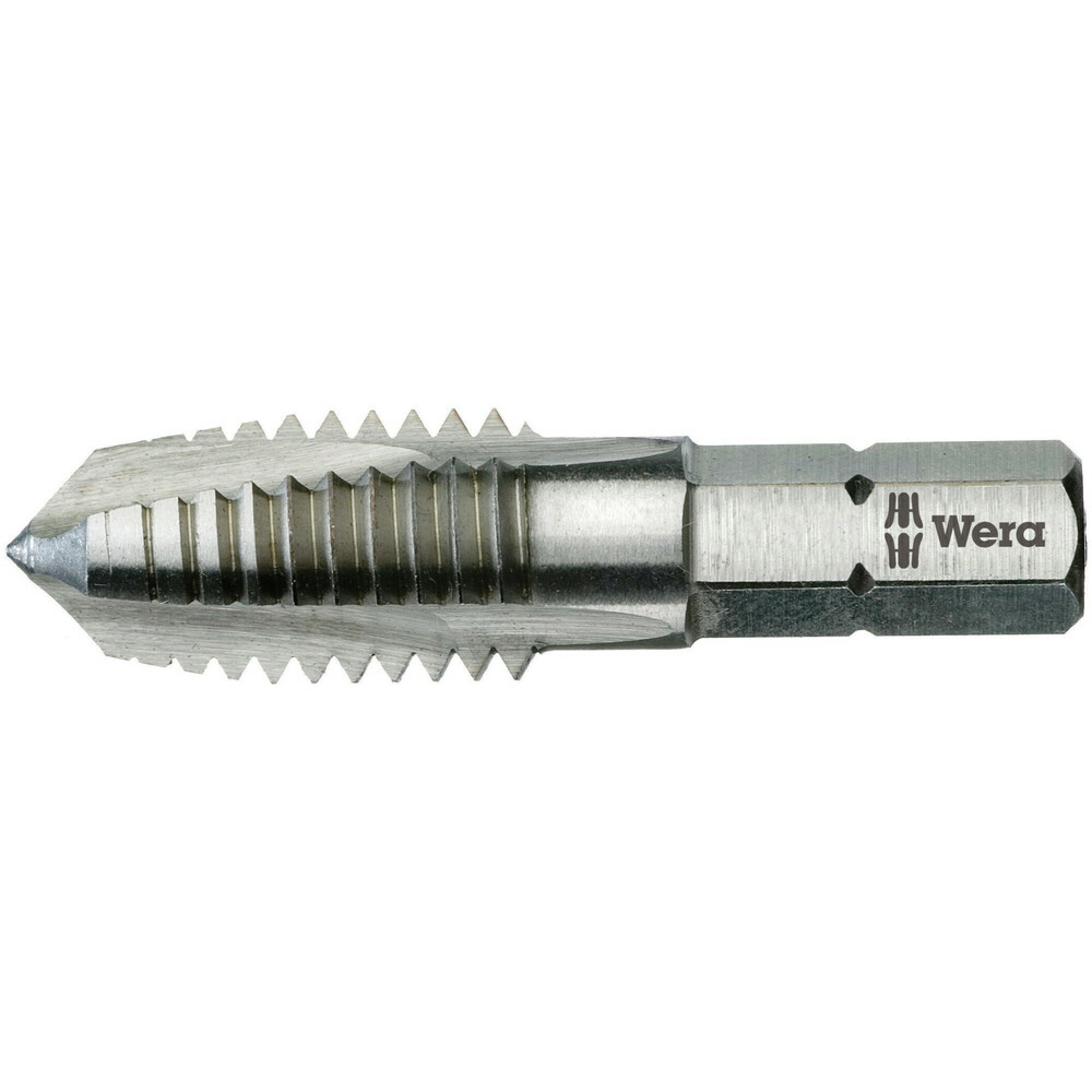 High quality tap cutting bit by Wera. To cut metric threads. The hexagonal shaft ensures very good power transfer. The finely-tuned material elasticity provides for great durability. Perfect chip removal and a low tilt risk. ¼" hexagon, suitable for holders as per DIN ISO 1173-D 6.3.