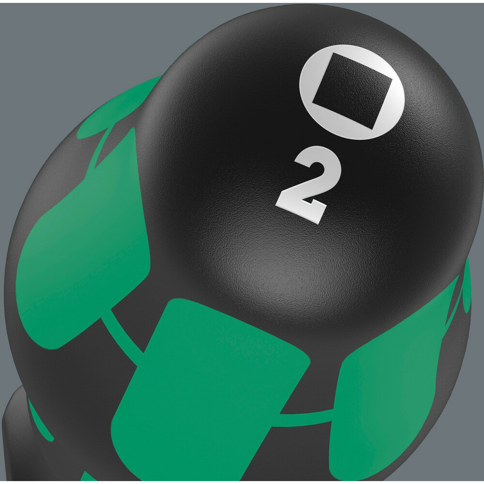 High quality Kraftform Plus screwdriver for square socket screws. The colour coding system allows the user to quickly find and identify the size needed. Multi-component Kraftform handle for fast and low-fatigue working. The Wera Black Point tip offers optimised corrosion protection and an exact fit. The hexagonal anti-roll feature prevents any bothersome rolling away at the workplace. Handle markings for simplified finding and sorting of the tool.