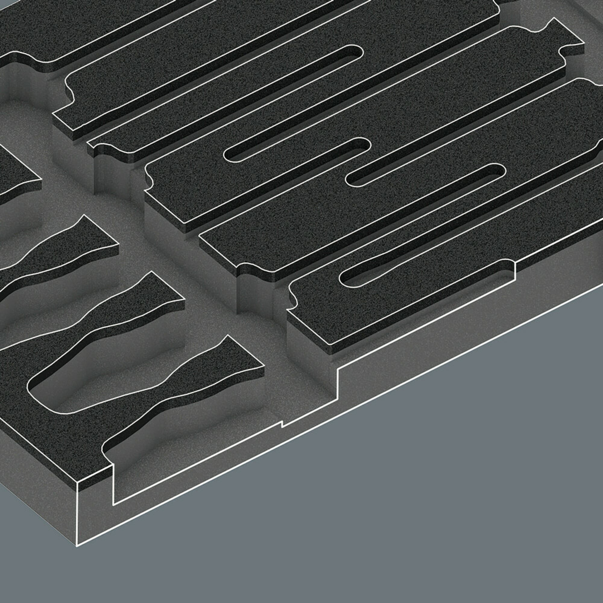 Durable foam insert; two-coloured for quick identification of missing parts; suitable for the Tool Rebel roller cabinet, equipped with 16 Wera Kraftform screwdrivers (workshop, VDE, chiseldriver, Micro) as well as 2 screw grippers.