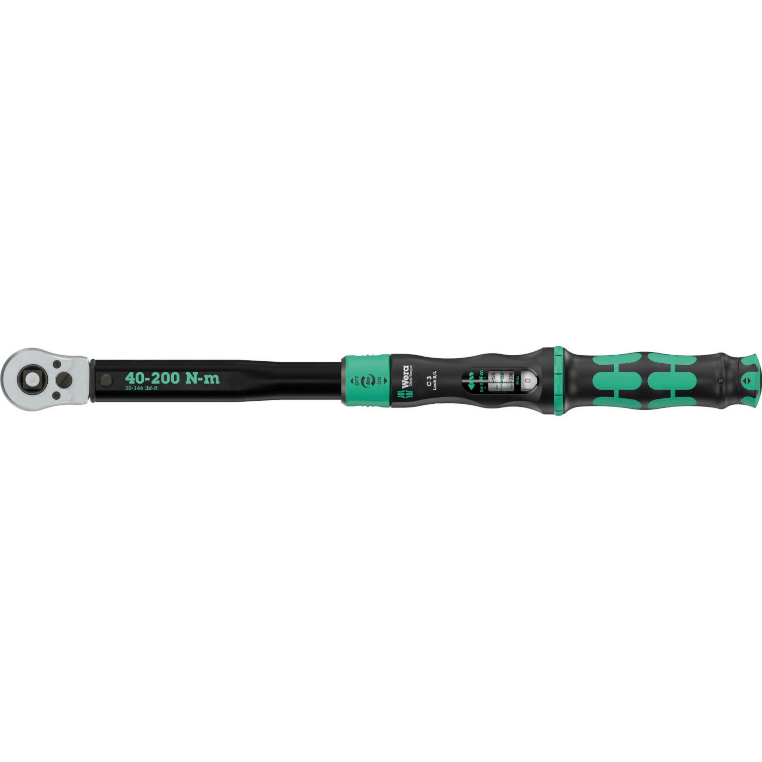 Wera Click-Torque Lock C 3 R/L Torque wrench, adjustable, Torque function, square head insert (1/2"), clockwise/counterclockwise torque operation, 40-200 Nm