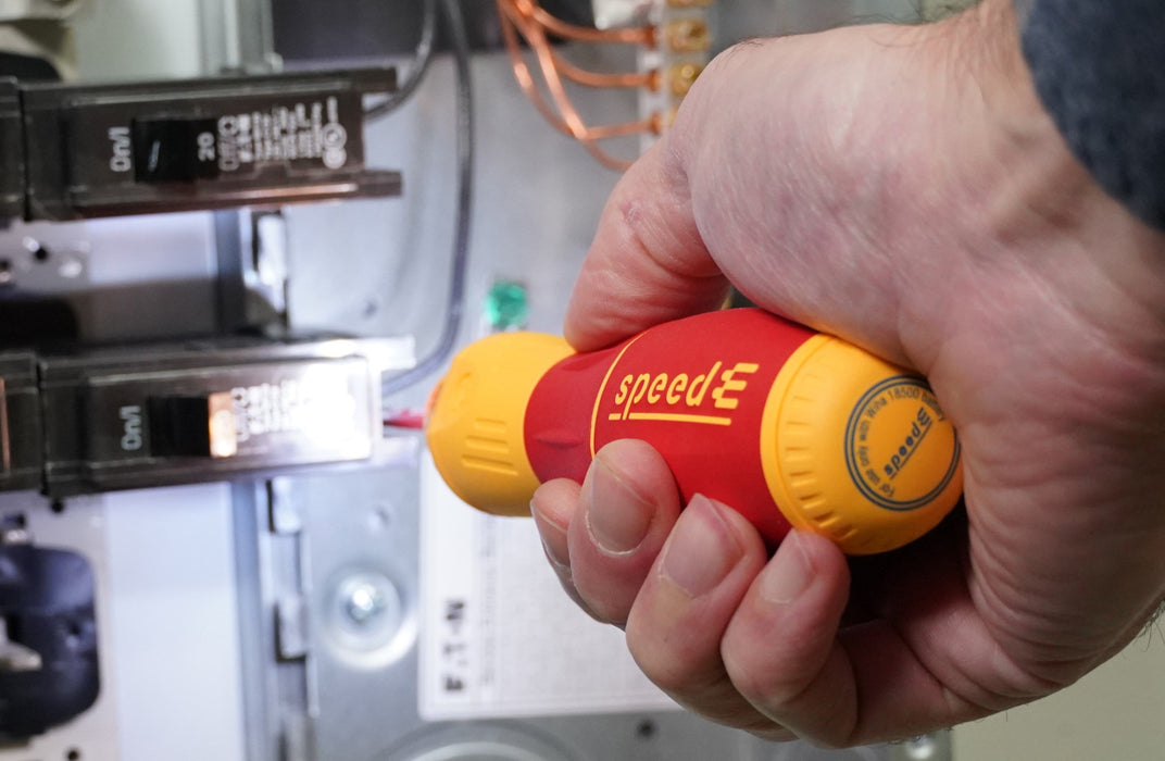 The Wiha Insulated SpeedE®II electric screwdriver is faster, stronger, and more efficient than ever. The SpeedE®II now features two power levels0.4 Nm (3.5 in/lbs.) and 1.0 Nm (8.8 in/lbs.) for an improved range of performance. Upon reaching the torque capacity, simply continue turning fastener by hand using the built-in the ratcheting function to reach the desired tightness and thereby decreasing risk of equipment damage. Change power levels by toggling a switch integrated into a form-fit handle that delivers comfort and control and features a ring light for low-light work environments. Comes with rechargeable lithium-ion batteries for driving up to 800 fasteners per charge—USB charger with plug adapter is included. Every single Wiha insulated tool is individually tested to 10,000 volts AC and rated to 1,000 volts AC (1,500 volts DC) for safety and peace of mind in energized applications. Wiha Insulated tools meet ASTM F1505 standard specifications for insulated and insulating hand tools and CSA testing benchmarks for safety and performance.