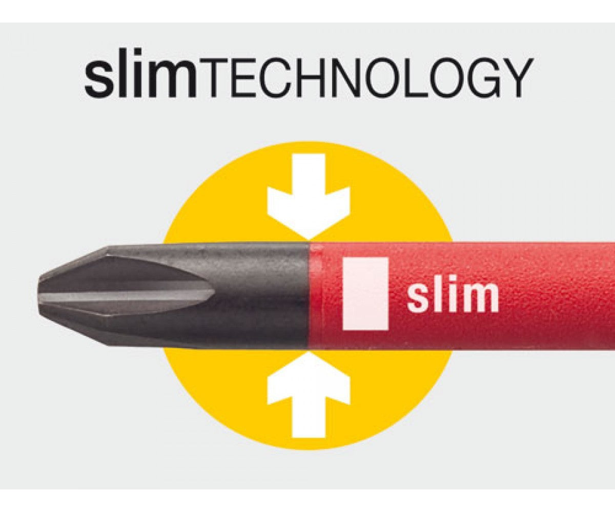 Wiha's Insulated SlimLine Ultra-Driver Blade Set features an ergonomic cushion grip for comfort, control, and maximum torque. The dual durometer construction delivers long-lasting durability, and the handle is directly molded to the blade holder for a permanent bond. Our innovative pop-up design puts more driver configurations in one compact tool by storing up to 6 SlimLine VDE certified insulated blades. Simply engage the push-button release to access the blades and rotate the compartment for a quick and easy selection of your required tip profile. The SlimLine VDE certified insulated blades consist of premium quality tool steel for strength and durability, have a black oxide finish for corrosion protection, and feature exact-fit precision machined tips for reduced cam-out. Every single Wiha insulated tool is individually tested to 10,000 volts AC and rated to 1,000 volts AC (1,500 volts DC) for safety and peace of mind in energized applications. This tool is VDE Certified and meets EN/IEC 60900 testing standards for protection against arc flash explosion, ASTM F1505 standard specifications for insulated and insulating hand tools, for electrical safety on the jobsite, and CSA testing benchmarks for safety and performance. You can buy with confidence knowing that this product is Backed by the Wiha No Hassle Guarantee.
