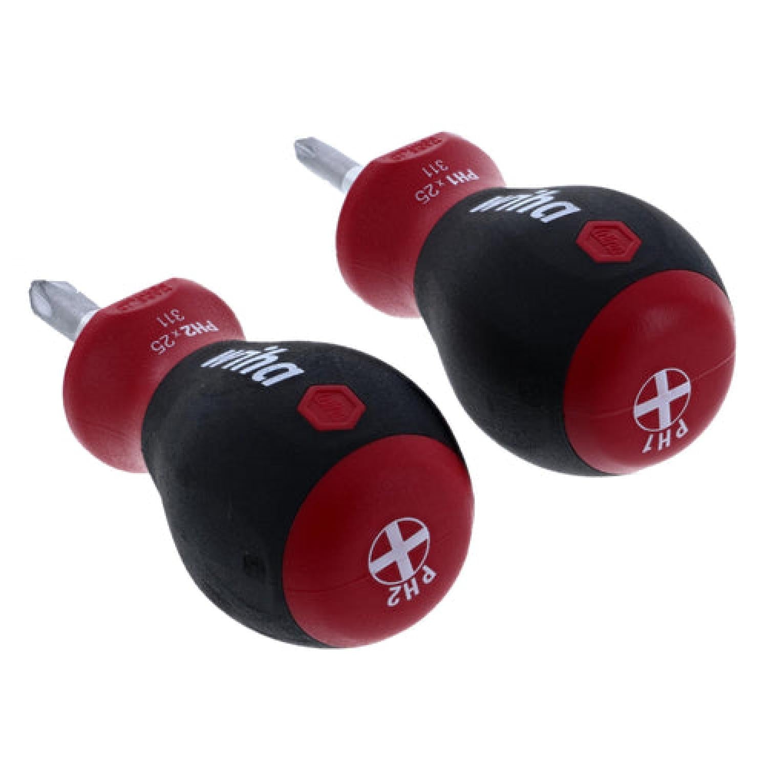 Wiha Tools 31192 #1 + #2 x 25mm 2 Piece SoftFinish Stubby Phillips Set