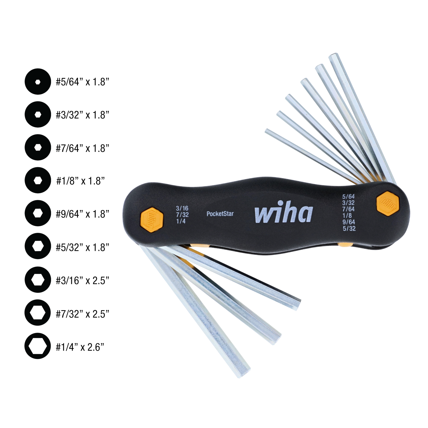 Wiha Tools 35197 9 Piece PocketStar Fold-Out Hex Key Set - SAE