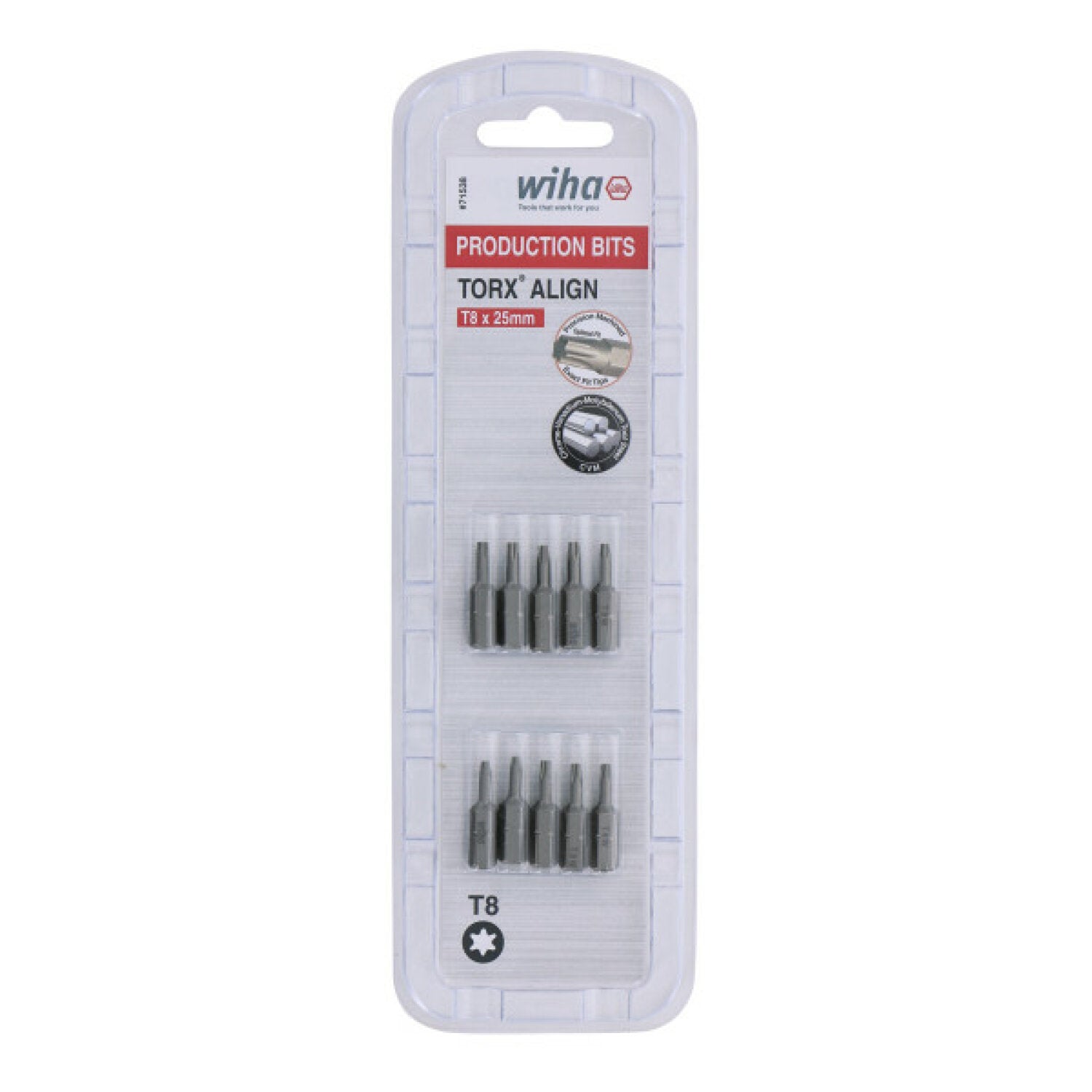 Wiha Tools 71538 T8 x 38mm TORX® Align Insert Bit, 10 Pack