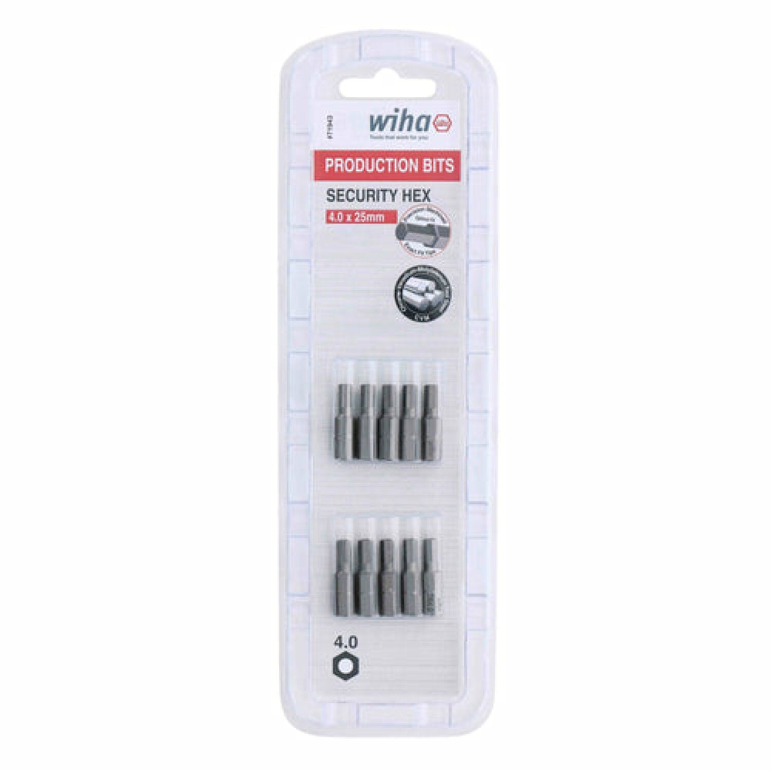 Wiha Tools 71943 Security Hex Insert Bit, 4.0 mm x 25 mm, 10 Pk.