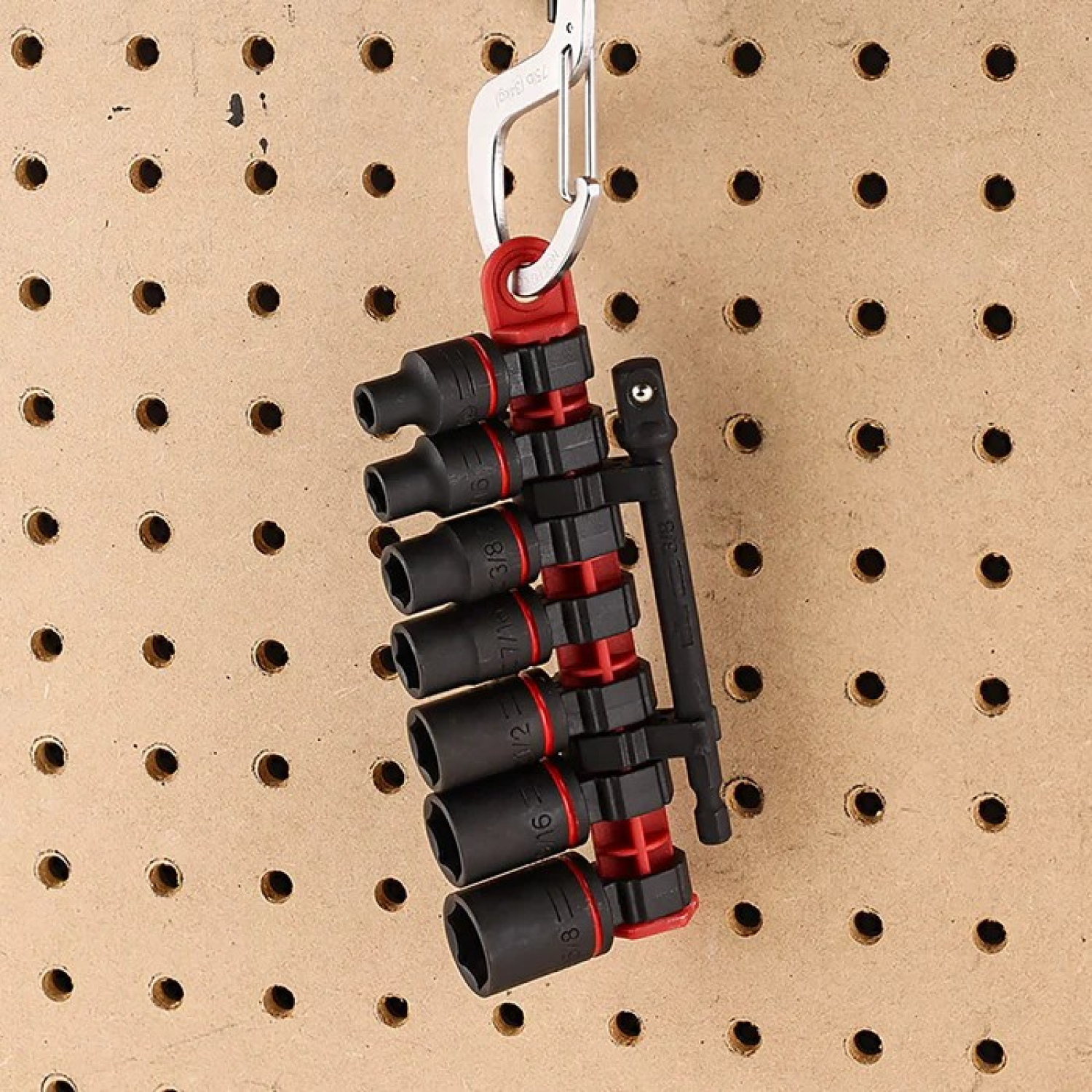 360° Swivel Socket Strip – Keeps sockets visible, accessible, and securely organized with integrated adapter storage