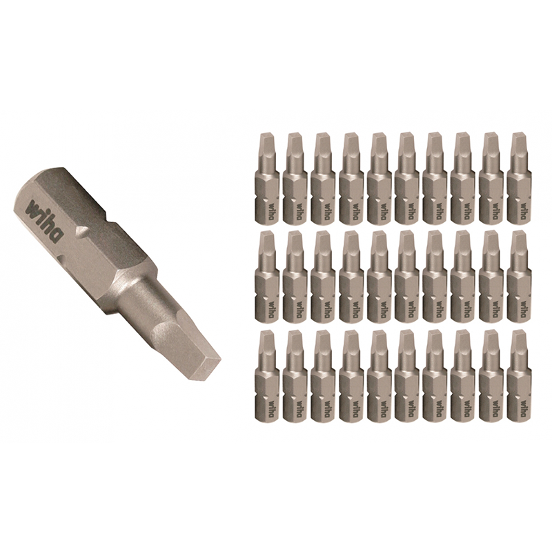 Wiha Square bits have tips that are exact fit, precision machined to high tolerances, and are made from durable tool steel. The bits are hardened with computer controlled heat treating for maximum durability. Wiha Square bits are designed for applications requiring high wear resistance. Wiha Square bits have a universal fit for all standard bit holders and power tools. Wiha bits are guaranteed for their long lasting performance in the toughest and most demanding applications.