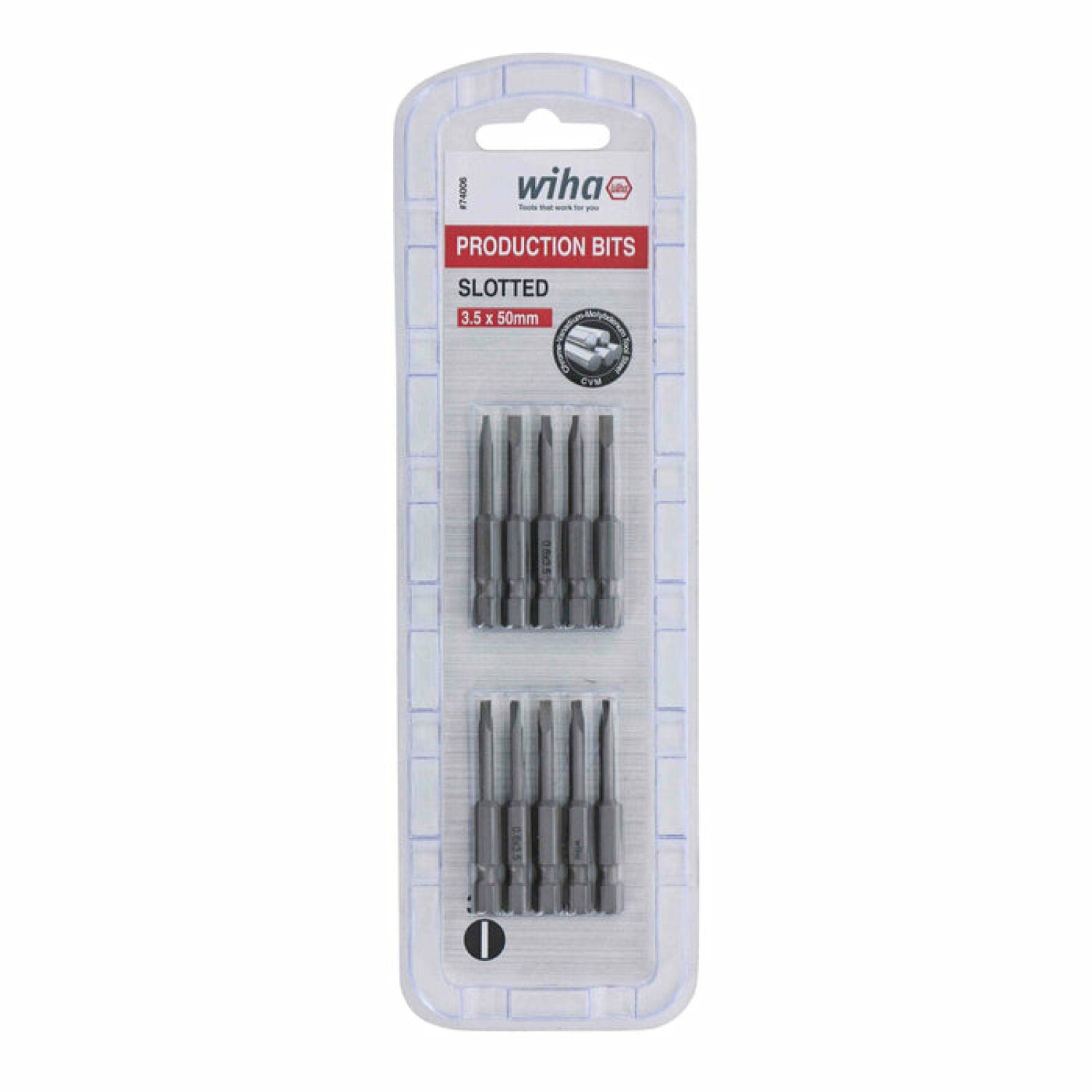 Wiha Tools 74006 3.5mm x 50mm Slotted Power Bit, 10 Pack