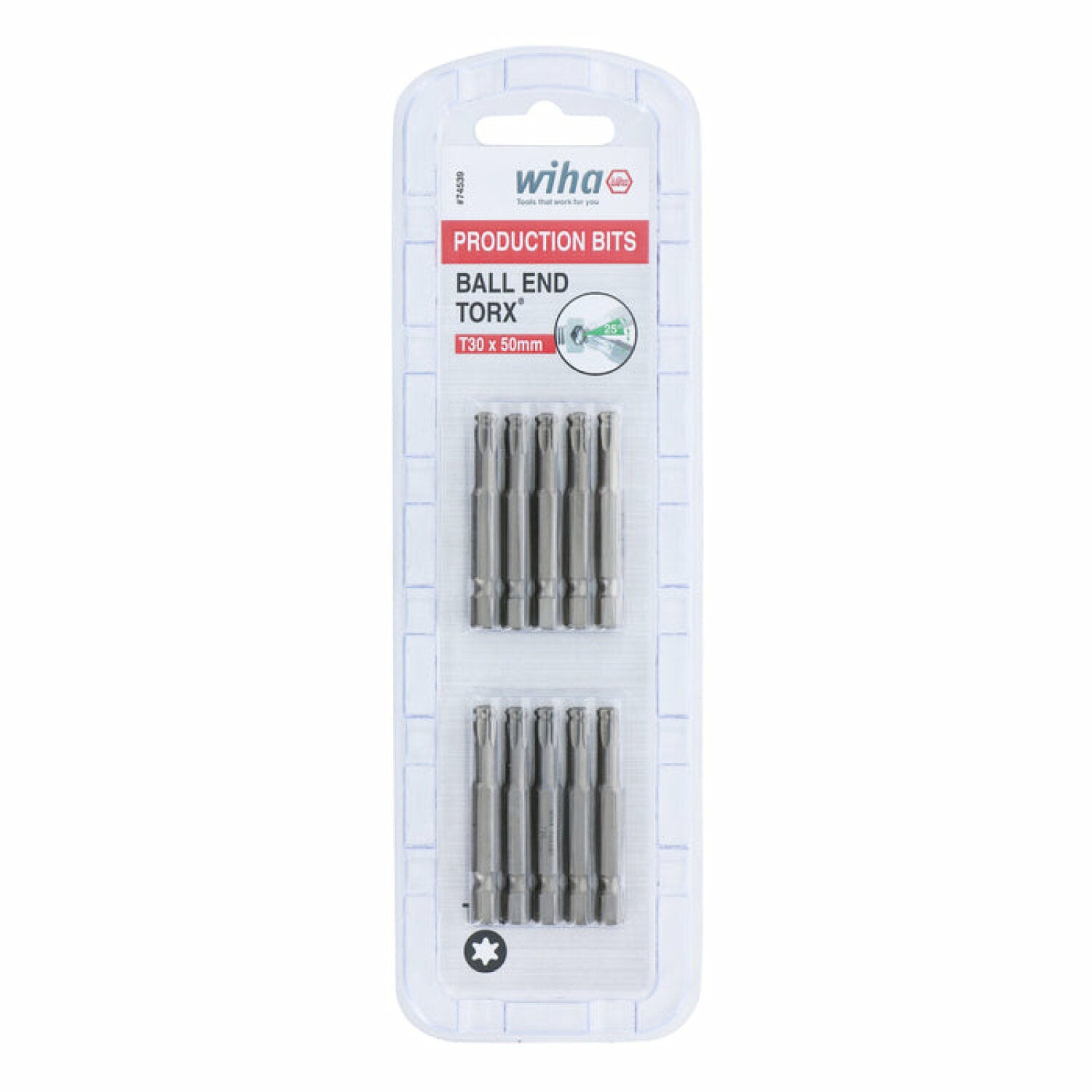 Wiha Tools 74539 TORX Ball End Power Bit, T30 x 50 mm, 10 Pk.